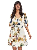 V-Neck, Half Sleeve / Short Sleeve, Floral Print, Flared, Flowy, A Line, Buttons Up, Split