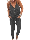 Features: Spaghetti strap, Sleeveless, V neck, Button front, Elastic drawstring waist, Solid, Two side pockets, Soft and comfortable, Cute and sexy, Relaxed fit, Stretchable, Beam foot