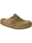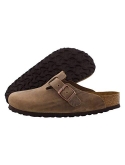 Leather clog featuring adjustable buckle strap at vamp and contoured cork footbed Roomy toe box to promote balance and correct alignment Raised toe bar encourages natural gripping motion of feet Deep heel cup cradles heel