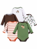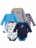 Set includes five long-sleeve bodysuits Made of 100% Interlock Cotton, exclusive of decoration Snap Closure for Easy Diaper Changes Optimal for Cooler Temperatures Machine Washable