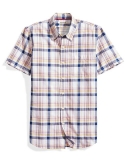 This casual, lightweight Madras short-sleeve shirt in plaid features a button-down collar, patch chest pocket, and box-pleated back yoke. Made in our Signature Tumbled Cotton for a soft, yet sturdy, hand. We utilize a unique Heritage Wash to give our garments a custom, lived-in feel right away.