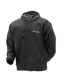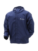 Rain jacket with adjustable, attached hood Inner and outer storm flap with snap closures Zippered external and internal pockets Hook-and-loop adjustable wrists Cord-lock adjustable waist