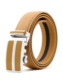 Men's Dress Belt Genuine Leather Automatic Buckle Ratchet Belt, Adjustable Exact Fit Belt