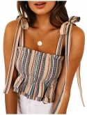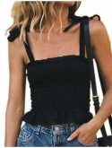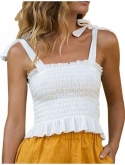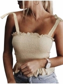 Women's Frill Smocked Crop Tank Top Tie Shoulder Strap Vest