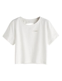 Thin t-shirt fabric, a little stretchy Cut out tees, short sleeve summer crop top Ripped tee shirt, casual style, loose fitting Easy to wear with shorts, jeans, leggings, skirts Please refer to the size measurement below before ordering