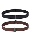 Flat buckle--- The flat buckle is not like a bulky buckle, it lays flat so that it's no show when you wear a tighter-fitting top. Just put the clasp into the belt end hole and you'll get a perfect no show flat buckle belt for your pants.