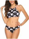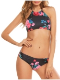 The high neck bikini top for women features adjustable halter tie, removable cups, high neckline. This push up swimming bikini can be keep the cups in place but allowing for some adjustment--at least they won't overlap! One really great feature is the buckle in the back rather than a tie--easier to put together