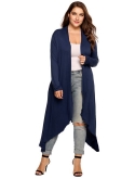 Zeagoo Women's Plus Size Long Sleeve Waterfall Asymmetric Drape Open Front Long Maxi Cardigan Sweater L-5XL