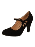 Kimmy-21 Black Round Toe Pierced Mid Heel Mary Jane Style Dress Pumps