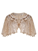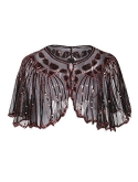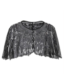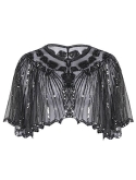 Deco with sequins,beads,exquisite cape chic zig zag hem design,see-through beaded shawl metal hook closure in front 1920s inspired cape cover up great for evening/party/wedding occasion