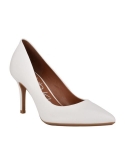 STYLE AND DESIGN: Classic pointed toe pump with a 3 inch stiletto heel. Finished with a Calvin Klein logo plate at back heel.