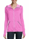 Lightweight 100% polyester tech fleece full zip hoodie provides warmth without weight.Cool Comfort fabric wicks away sweat to keep you comfortable.High/Low hem.Thumbholes at cuffs for comfortable and secure hand coverage.Roomy front pouch pocketsTag-free for itch-free workouts.Style O4873