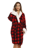 LUXURIOUS DESIGN: Chic yet comfy, this knee length robe treats you to a touch of cozy luxuriousness. It comes with a beautiful sherpa shawl collar, stylish cuff on the sleeves, 2 patch pockets, and an eye-catching buffalo plaid pattern that is guaranteed to cater to just about any taste.