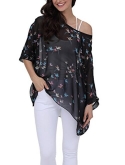Batwing sleeve,off shoulder sexy chiffon tunic poncho caftan,clever cut and unique floral design,lightweight and comfy bohemian tops,a variety of colors,easy to pair with shorts,leggings,pencils skirt,or other summer clothes,it will be perfect for summer.
