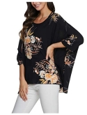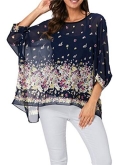 iNewbetter Womens Floral Batwing Sleeve Chiffon Beach Loose Blouse Tunic Tops