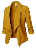 3/4 gathered sleeves / Open front / Draped neck / Waist length / Asymmetrical