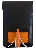 Front flap magnetic closure with tassel RFID Protected built-in card slots Crossbody and belt strap included Vegan Leather Dimensions: 4.5"W x 7.25"H x .5"D