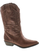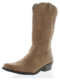 Imported synthetic Step up your style with these western-style boots featuring syntheticupper with accent stitching, an easy slip-on construction and a 11/2'' heel.