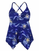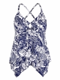 80% Nylon, 20% Spandex Imported Pull On closure V neck,key-hole design wireless,built-in soft bra crisscross straps back handkerchief hem,flowy tankini top, easy to match with any swim shorts/brief/bottom