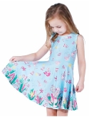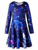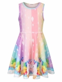 Sleeveless and long sleeve T shirt dress, placement print on skirt, twirling casual girls dress. Patterns contain girls' favorite unicorn, mermaid, butterfly, elk, Pegasus, lollipop, and candy.