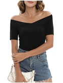 FEATURES -- Off Shoulder, Off The Shoulder, V Neck, Long Sleeve, Short Sleeve, Slim fit, Stretchy Fabric, Basic Tee, Casual Juniors Tops, Sexy Tops for Clubbing, Tank Tops for Women Sexy, Casual Summer T Shirts For Women.