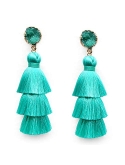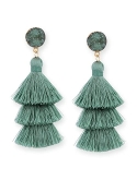 •Natural Druzy gemstone studs and 3-layer thread tassel dangles in a voluminous, hula-skirt inspired shape