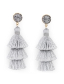 Me&Hz Bohemian colorful druzy stud dangle drop tiered tassel earrings are made of smooth and glossier silk string