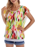 Hand wash only Printed,short batwing sleeves Pleated at front Mesh fabric with lining Please refer to the size measurement as below