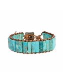 Chakra bracelet made with leather cord weaved together with stone beads. Closure using alloy button for size adjustment. Sunflower charm on the alloy button, It could fit for most people's wrist size. There are more than 10 bracelets for you to choose, all of them set a variety of colors and styles nature stones.