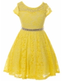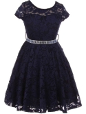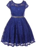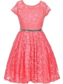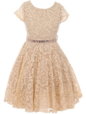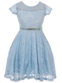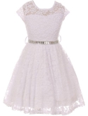 Cap Sleeve Lace Flower Girls Dresses. Lace Skater Dress with Stonebelt. Zip up back and tie-back sash. Dress is tea length and fabulous! Perfect for flower girl, Junior Bridesmaid, Easter, Pageant, Graduation and other special occasions.