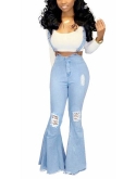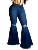 Feature:ripped holes at the knee,High waist fit,Wide flared and frayed hem.
