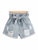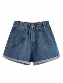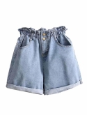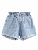 Two pockets front and two pockets back, Classic blue denim shorts, casual design, perfect for beach, streetwear, casual out, holidays, travels, etc