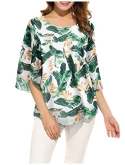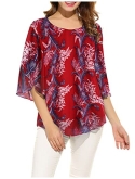 Features: Casual, Blouse Tops,Scoop Neck,Solid Color,Dressy Chiffon Blouse, Half Ruffle Split Sleeve, Two Layers Design, 3/4 Sleeve tops, Plus size blouses and tops, Chiffon shirts loose fit.