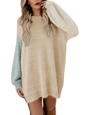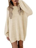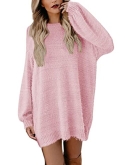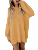 Long sleeve loose pullover sweater dress, round neck