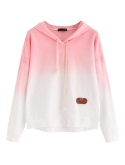 Long Sleeve, High Low Hem, Drawstring Hoodies, Tie Dye Ombre Colorblock Printed