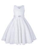 Sleeveless, Boat neck, Tulle lace layered, Rhinestones Brooch, Removable Sash Tie belt for Waist Adjustment, Back zipper closure