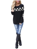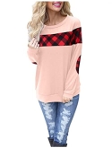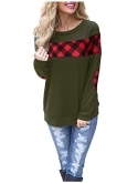 Features: checked crewneck sweatshirt, long sleeve with red plaid elbow patches, band hem, colorblocked pattern,casual checkered shirt style.