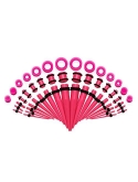 AcrylicTotal of 50 Pieces: 14 Silicone Tunnels 8G-00G+12mm, 18 Straight Tapers 14G-00G, 18 Double O-Ring Plugs 14G-00G