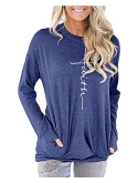 This simple t-shirt is loose fit, and the faith printed look fashion. You can match a pair of skinny pants or shorts.