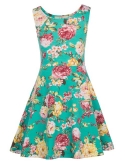 Floral Printed Style: 95%Polyester + 5%Spandex, Vibrant flower pattern, A-Line hemline