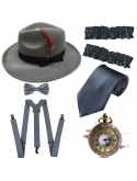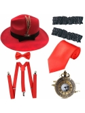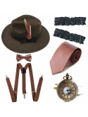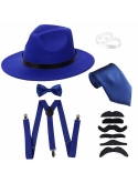 Packet include: 1 x Manhattan Fedora Hat; 1 x Y-Back Elastic Trouser Braces Suspenders ; 1 x Gangster Tie; 6 x Fake Mustache; & Pre Tied Bow Tie