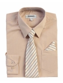 Boy's Long Sleeve Dress Shirt Stripe Tie, Bow Tie and Hanky