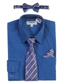 Boy's Long Sleeve Dress Shirt Solid Tie, Bow Tie, and Hanky