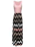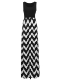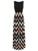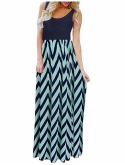 Feature:Striped,zig zag,chevron print,High waist,Sleeveless tank top, ruched empire waistline, floor length,sexy scoop neck chic style,full length