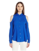 Women's Long Sleeve Cold Shoulder Button Down Top