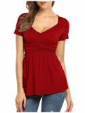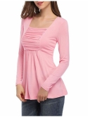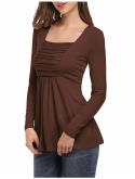 Features:The baby doll shirts with pull on closure, square neck, empire waist, long sleeves, short sleeves, a-line, ruched bust/breast, flare hem, front shirring flowy details makes more sexy, elegant.