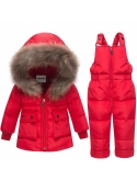 MATERIAL --- Fabric: 100% Polyester Fiber / Filler: 90% White duck down. The snowsuit Light weight but is soft and warm. it doesn't restrict your baby's movement.