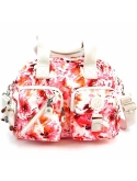 Nylon Polyester Dimensions: 13" L X 9.75" H X 7.5" D Small zipped front pocket with flap pocket Two side slip pockets with velcro closure Adjustable, removable strap