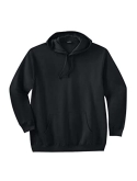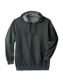 Roomy big & tall fit Ribbed knit waist and cuffs Front pouch pocket Drawstring at hood Cotton/polyester