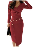 Features: Long sleeve,Subtly ruched bodice with v neck,Slim empire wait,Asymmetrically wrap dress with button detail